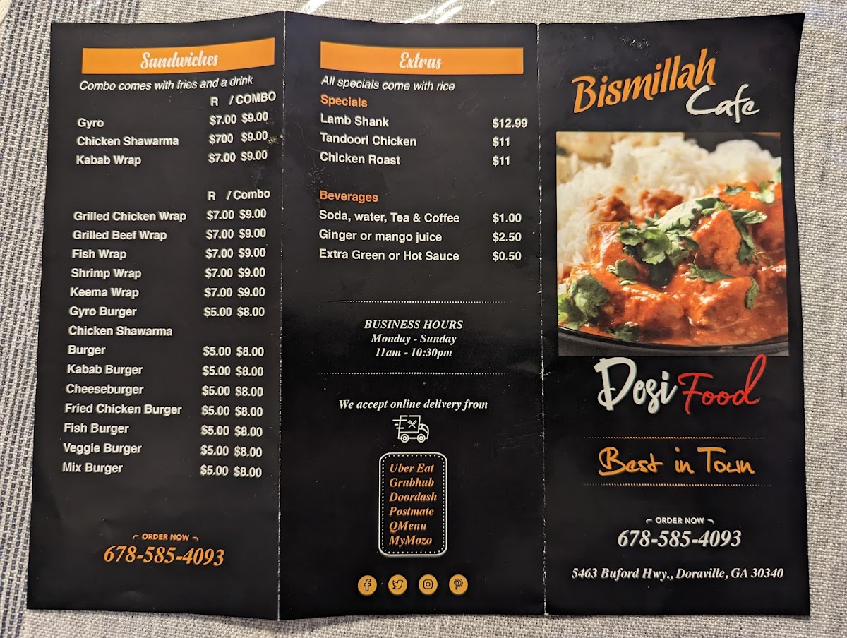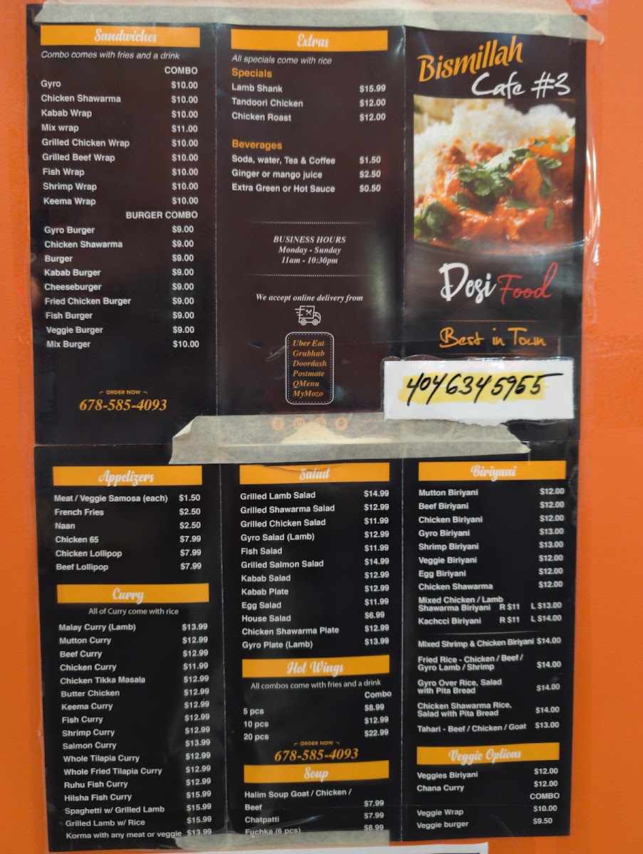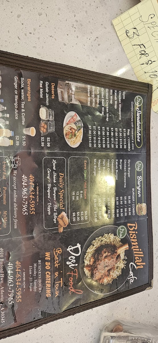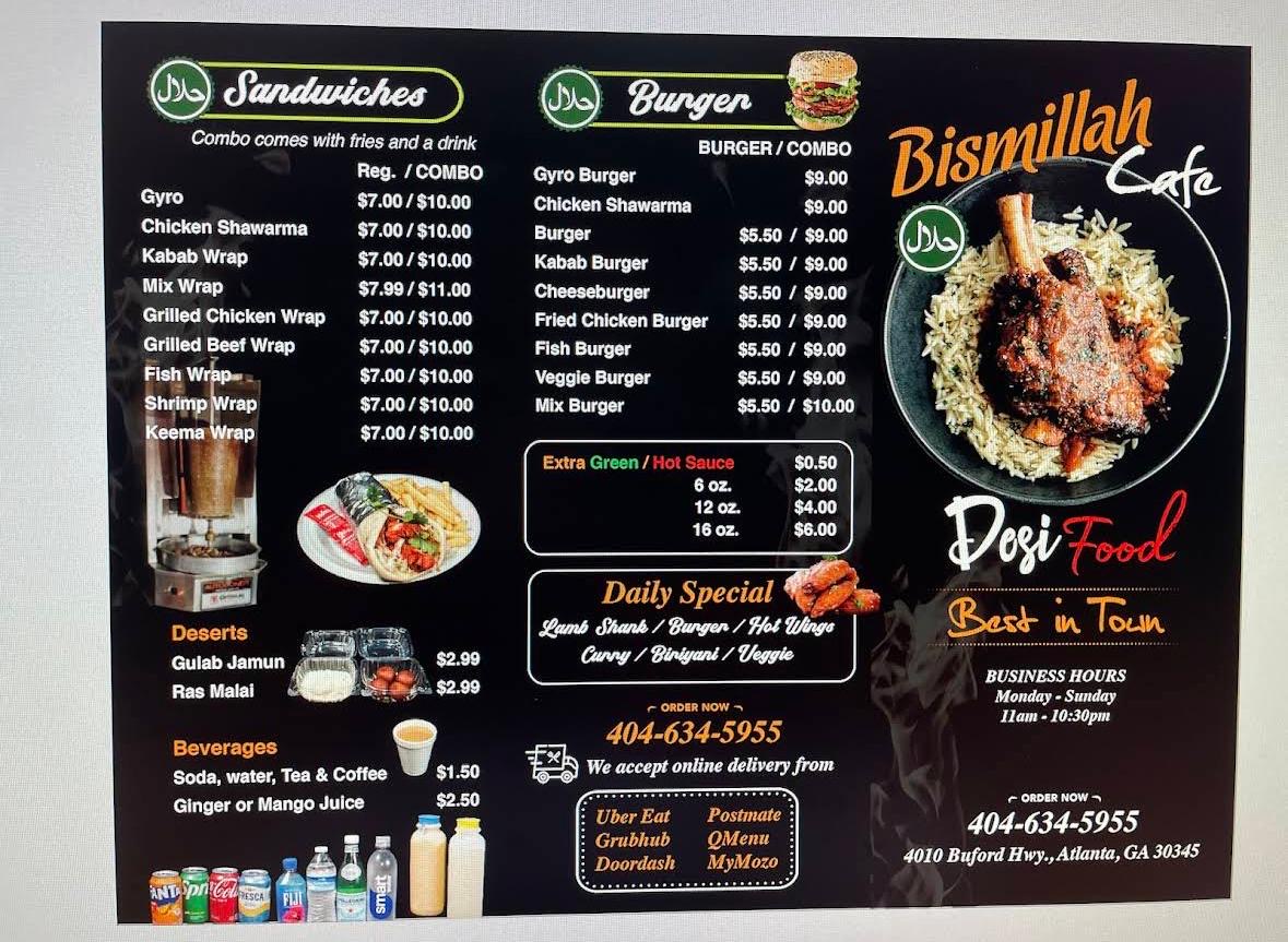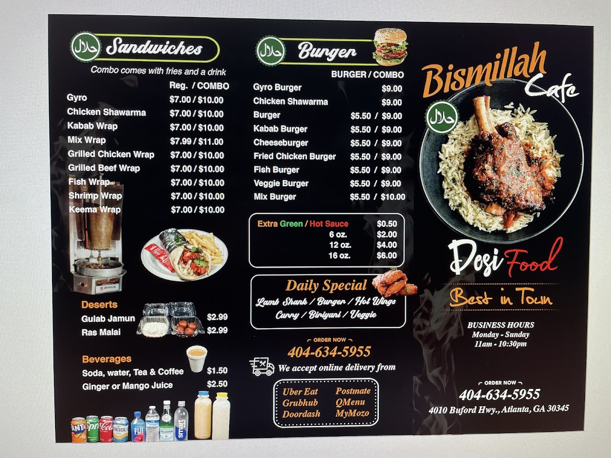 Bismillah Cafe, located at 4010 Buford Hwy NE, Atlanta, GA, offers a diverse and flavorful menu that caters to a wide range of tastes, with dishes inspired by a variety of cuisines. Their appetizers are a great starting point, with options like the Baklava (1 Pcs) and Beef Lollipop providing a delightful mix of sweet and savory. For something more substantial, the Beef Shikh Kabab and Cheese Cake are popular picks among diners.
